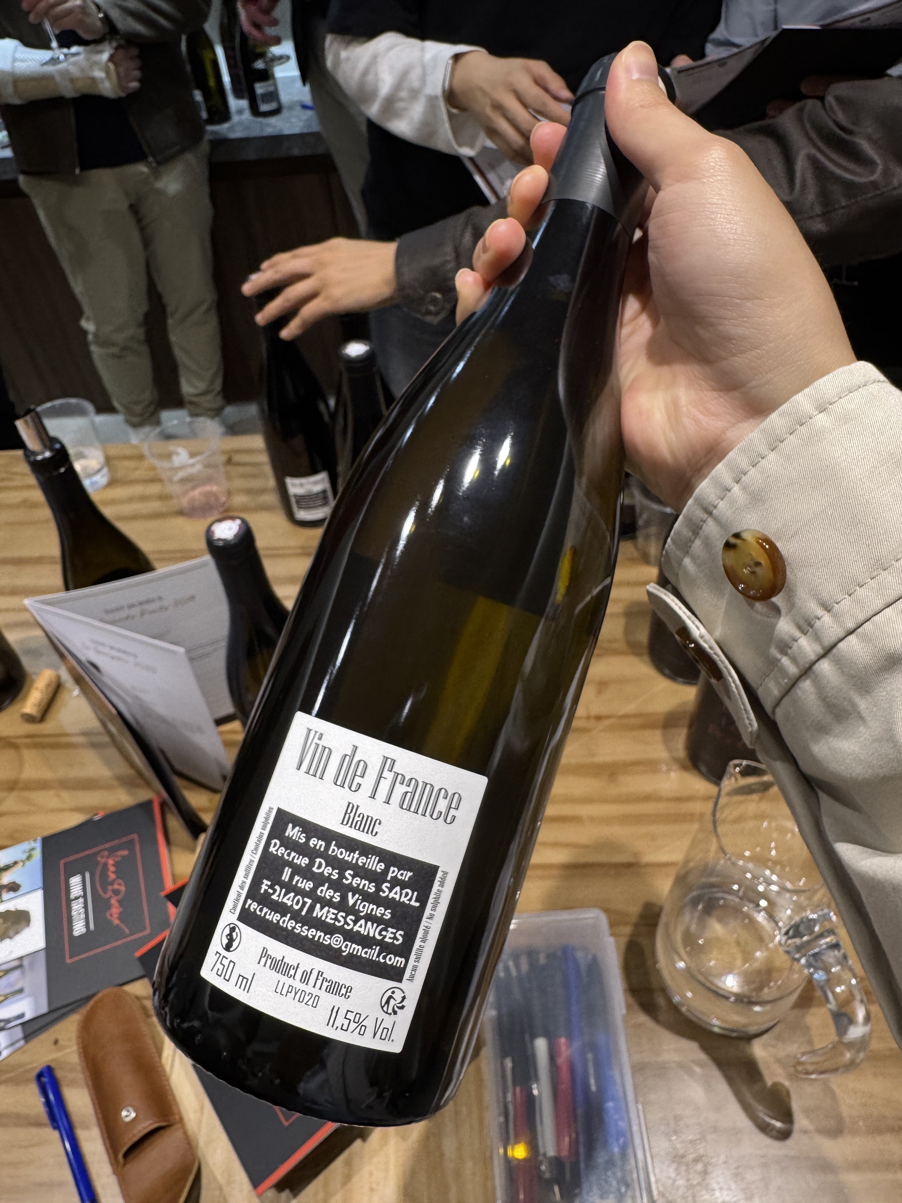 Yann Durieux 親自主持嘅 Masterclass,展示佢 Recrue des Sens 系列嘅自然酒風格。Gary 揀咗 3 支心水(#4, #5, #7),全部係 2019-2020 年份嘅 Vin de France Rouge。